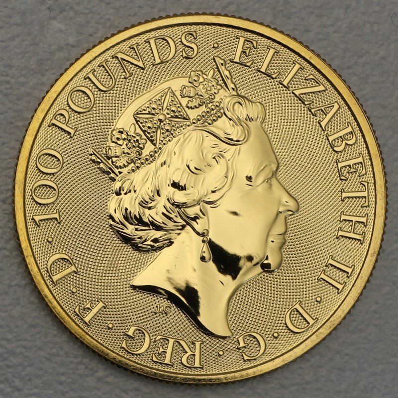 Hinweis | The Queen’s Beasts Goldmünze Großbritannien Serie. Anlagegold ist nach §25c UStG steuerbefreit. |