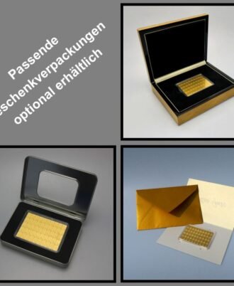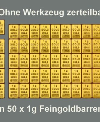 Die 50g CombiBar Goldtafel ist die ideale Wahl für Anleger, die Flexibilität und Qualität in einer Anlage suchen. Dieser Tafelbarren besteht aus 50x 1g Feingoldbarren mit einem Feingehalt von 999,9/1000, die durch präzise Sollbruchstellen verbunden sind und sich verlustfrei trennen lassen. Hergestellt von Valcambi, einer der größten LBMA-zertifizierten Goldprägeanstalten der Welt, und angeboten von UCTR-GmbH, garantiert die CombiBar höchste Reinheit und weltweite Anerkennung. Das patentierte Design von UCTR-GmbH besticht durch ein hochwertiges Prägebild mit erhabener Beschriftung und perfekt gearbeiteten Sollbruchstellen.