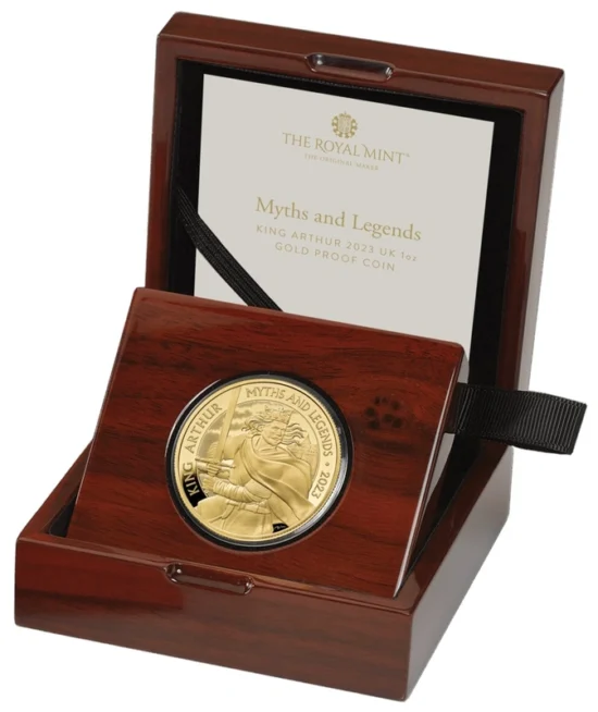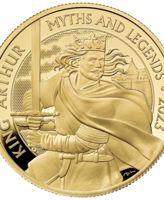 Die King Arthur Goldmünze enthält 31,103g Feingold (999.9/1000), geprägt von der Royal Mint. Als Teil der Myths & Legends Serie feiert sie König Arthur, den legendären König der Briten. Folglich zeigt die Münze Arthur auf seinem Pferd mit Excalibur, gestaltet von David Lawrence. Zudem wird sie in einer Mahagoni-Box mit Zertifikat und Begleitmaterial geliefert, limitiert auf 200 Stück weltweit. Entdecken Sie weitere Optionen auf unserer Goldanlagen-Seite.