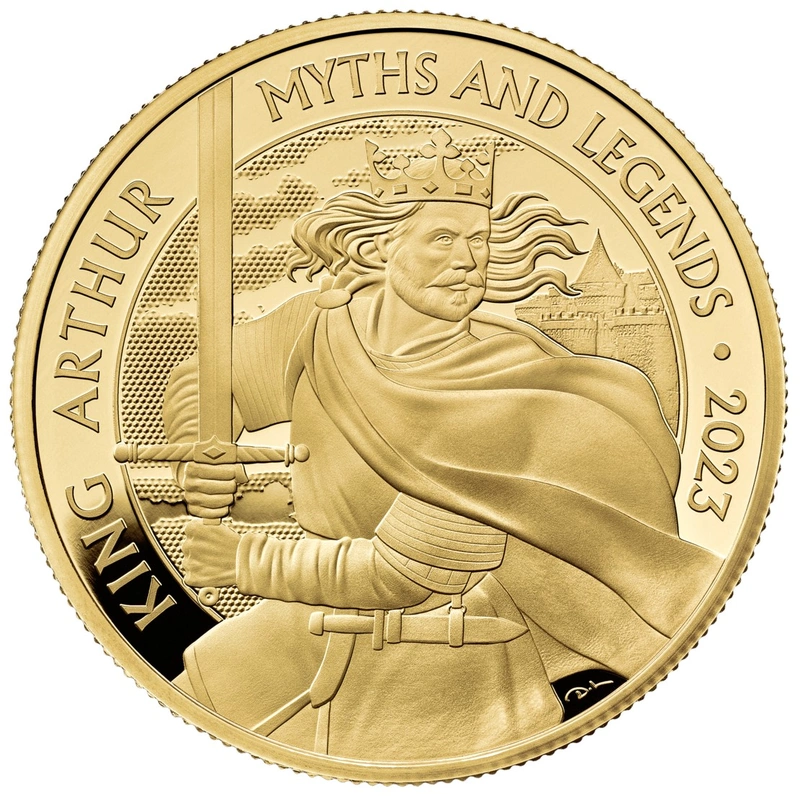 Image Alt Attribute: König Arthur mit Excalibur auf 1oz Goldmünze.